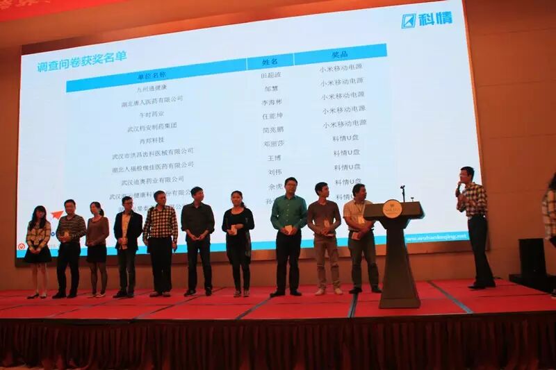 上午最后的环节是由武汉科情医药事业部销售副总陆燕女士为在线问卷调查中奖客户颁奖,大家对每个问题的回答,都是对科情深切的期望,也是科情更高目标追求的鞭策和要求,我们持续改进。