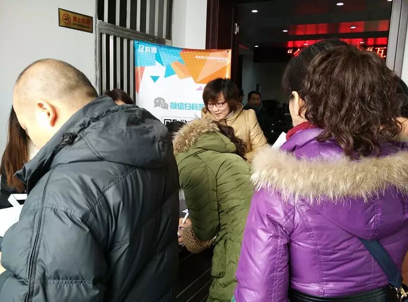 互联网新模式带来了诸多改变,签到现场采用了微信签到新应用,现场工作人员纷纷指导客户操作,感受互联网带来的变化。